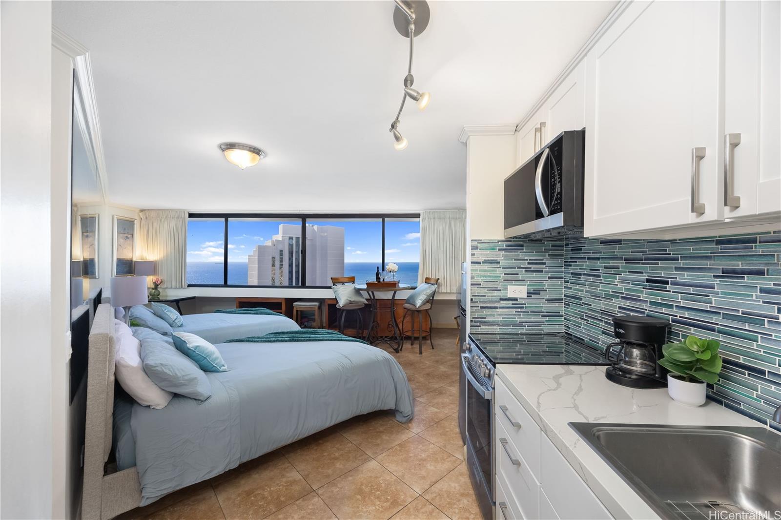 ワイキキ・マリーナにあるユニット3801を発見してください。高層階の完全所有権付きスタジオで、海、街、山のパノラマビューを誇り、有効な非準拠使用証明書(NUC)を取得済み。これにより合法的な短期賃貸が可能です。 投資家、1031交換の買い手、あるいは収益を生み出すセカンドホームを求める方に最適な物件で、高い柔軟性と需要に基づく潜在性を備えています。 開放的な間取りは採光・通風・眺望を最大限に活かし、モダンなキッチンと最新の家電を備えています。 建物の設備には、プール、ジャグジー、バーベキューエリア、およびセキュリティ付き駐車場が含まれます。 中心部に位置し、ビーチ、アラモアナセンター、ワイキキの飲食店やショッピングエリアに近接しています。 電気代およびケーブル代は管理組合費/維持費に含まれます(使用量に応じます)。 ワイキキで合法的に許可された短期賃貸物件を入手できる稀な機会!