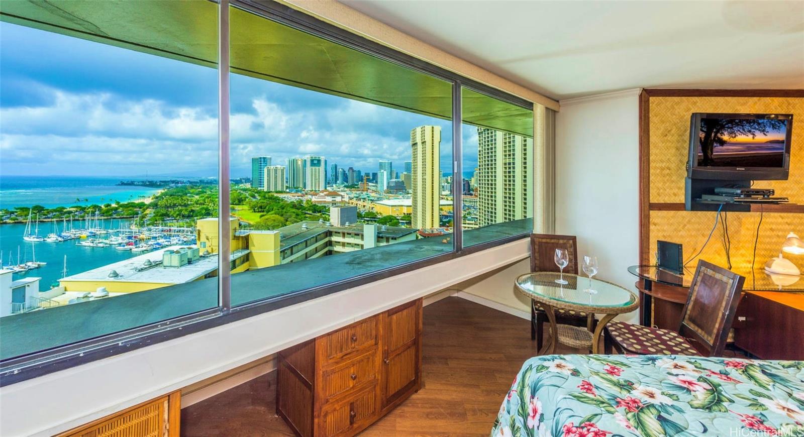 High floor with a panoramic ocean view. It is one of the few legal rental units with a NUC short-term rental certificate. The city is eliminating illegal short-term vacation rentals. Great investment with high occupancy and rents increasing as illegal units are eliminated. The best Waikiki location is away from the crowds but close to beaches, shopping, and restaurants. Completely renovated and includes a covered parking stall. Compare: Amazing high-floor panoramic ocean views – Legal for short-term vacation rentals – Includes a parking stall – Prime Waikiki location. The property will be sold together with Unit #2401.