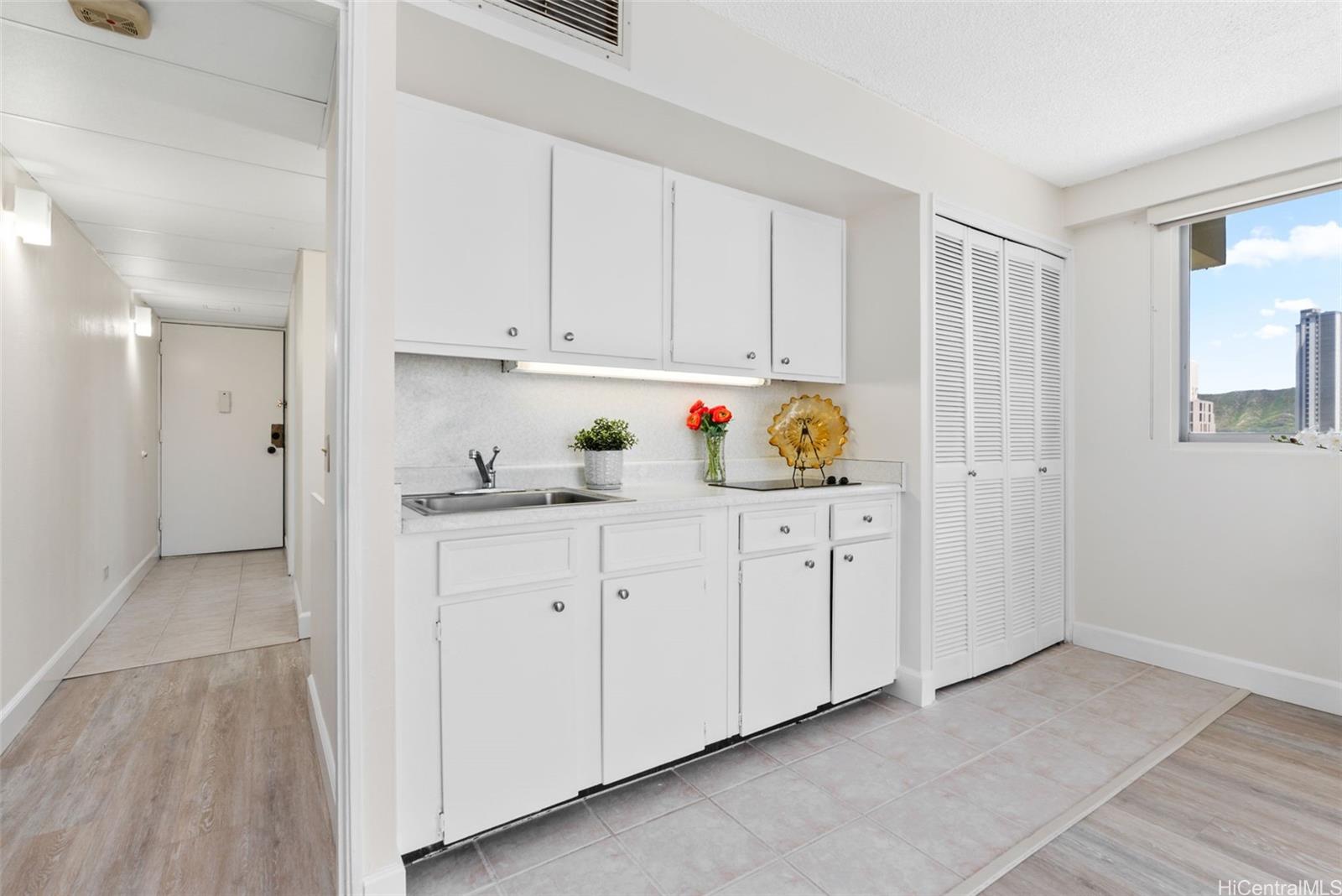 ワイキキの絶好のロケーション!ワイキキ・パーク・ハイツの11階にある、広々として静かな角部屋です。風通しが良く明るい、改装済みの1ベッドルーム・1バスルームの住戸です。 クヒオ・アベニューから少し離れた静かな環境と、素晴らしい自然光をお楽しみください。 主な設備・特徴として、新しいセントラルエアコン、屋根付きラナイ、そして最近行われた改修が挙げられます。 月額管理費には、電気代やその他の光熱費が含まれており、大変便利です。 入居者の皆様は、プール、新しいエレベーター、敷地内管理事務所、来客用駐車場を備えた安全な建物に加え、ビーチや飲食店、ショッピングエリア、カピオラニ公園に近い好立地というメリットを享受できます。 ワイキキ・パーク・ハイツは100%保険加入済みです!