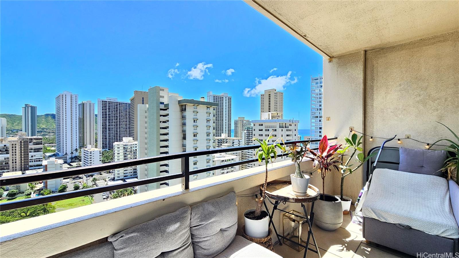 1 bedroom 1 bath 1 covered secured parking stall with only 4 units per floor. Located on a high floor with beautiful views of DiamondHead, Ala Wai Golf Course, and the surrounding mountains. Washer Dryer and AC has recently been replaced. Building amenities include a pool, sauna, and BBQ area. Relax on your lanai and enjoy the iconic Diamond Head views. Conveniently located in Waikiki near shopping, dining and just a short distance to the Honolulu Zoo. Great opportunity to make this unit your own and enjoy the Waikiki lifestyle. Interior photos coming soon don’t miss this opportunity.