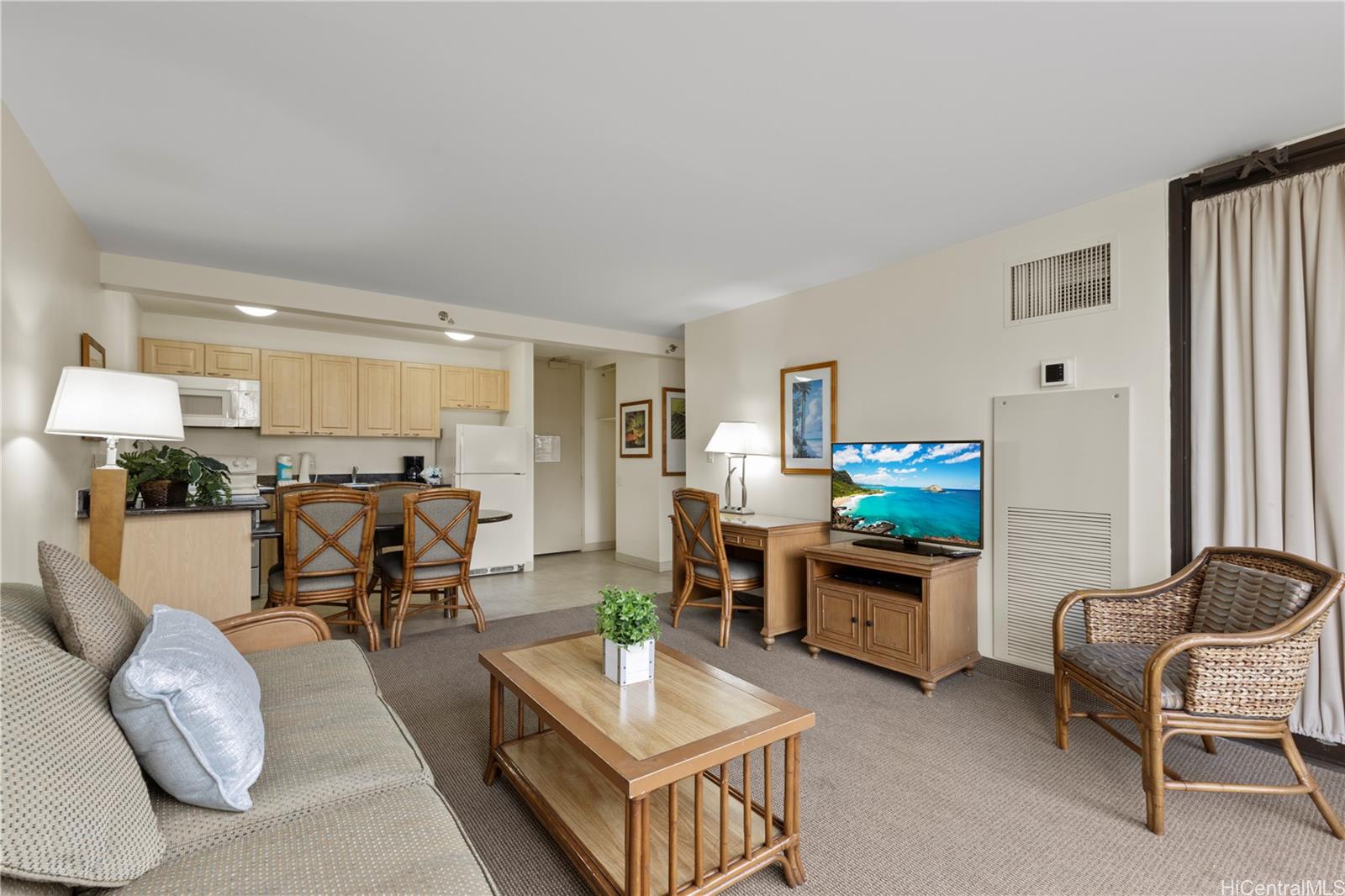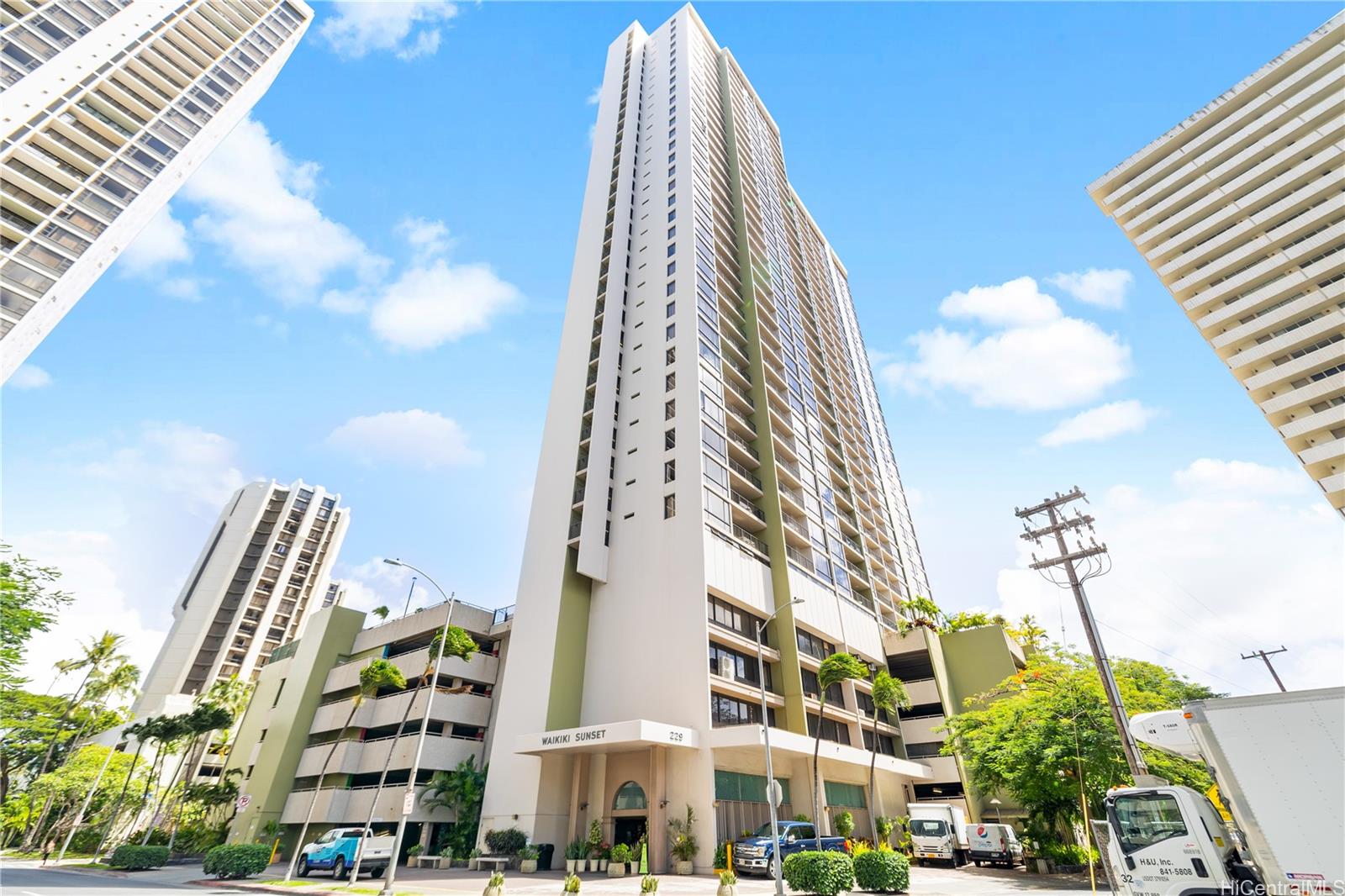 Enjoy this fully furnished, move-in ready one-bedroom condotel with lush park-like views and convenient access tothe amenity deck. This unit holds a Non-Conforming Use Certificate (NUC) for legal short-term rentals and iscurrently part of the Aston rental program. Located in Waikiki, this residence is within close proximity to WaikikiBeach, Ala Wai Golf Course, Honolulu Zoo, Waikiki Aquarium, and a variety of dining and shopping options at AlaMoana Center, Kapahulu, and Kaka‘ako. Public transportation and trolley services provide easy access to thesurrounding areas. Waikiki Sunset offers resort-style amenities, including a pool, BBQ area, sauna, gym, and patiodeck, with laundry facilities on each floor. This unit includes one unassigned covered parking space. Information onrental income is available upon request. The monthly $259 assessment is being paid off upon sale. LobbyRenovations are being planned by architects MGAHawaii. View our 3D Matterport floor plan online.