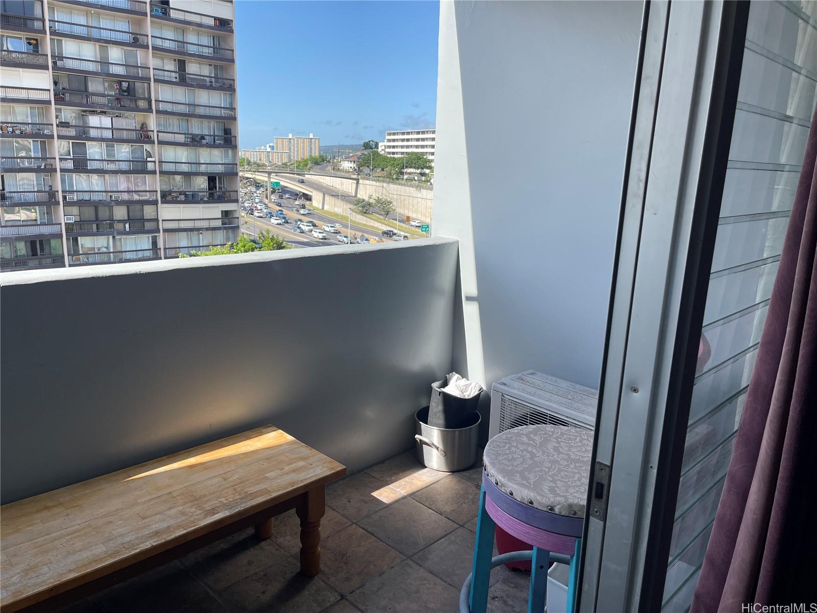 This charming studio features a generous size, with beautiful westward views from the covered lanai. The building boasts a live-in manager for added convenience. Floor-to-ceiling windows and a sliding glass door provide plenty of natural light and access to the lanai. The location is ideal with easy freeway access. The building is pet-friendly and conveniently located near sidewalks leading to restaurants, shopping, parks, and the oceanfront. The common laundry room is large and well-maintained, and there are two bike rack areas for residents. The studio is equipped with a split AC unit, laminate and tile flooring, and a full-size bathroom with a tiled shower and tub. Additionally, there is one reserved covered parking stall for the unit.