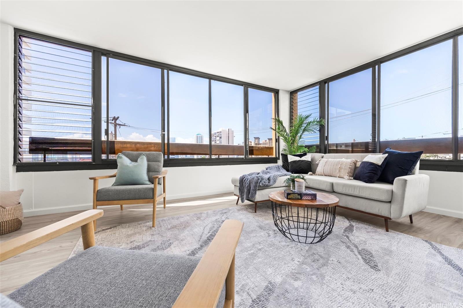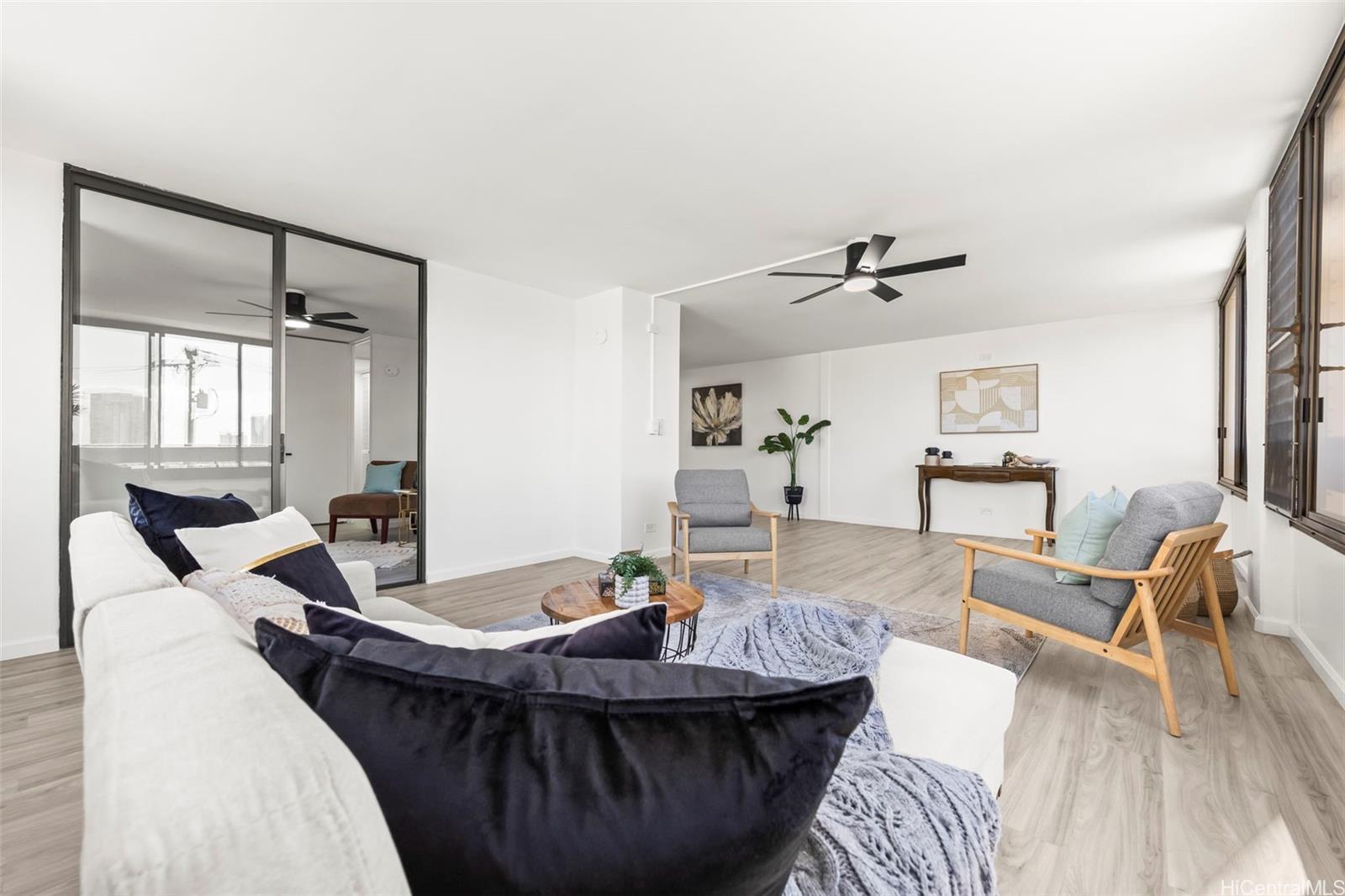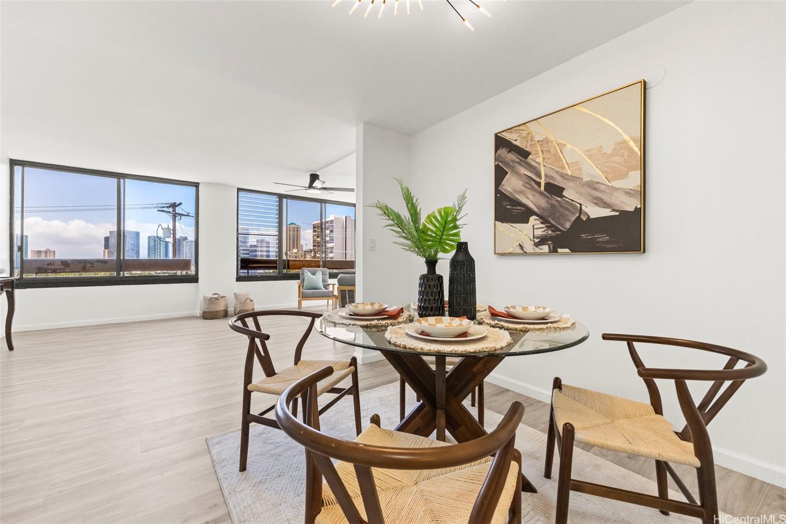 Beautifully renovated condo in Ward Lanai, waiting for a new owner to call it home! This 2-bedroom, 2-bath residence has been tastefully upgraded with sleek, refined finishes, including brand new luxury vinyl plank flooring, stainless steel kitchen appliances, artistic LED light fixtures, bright white cabinetry, and high-contrast black hardware. The living room is lined with large windows that fill the space with natural light and showcase sweeping views of the Honolulu city skyline. Cook up a storm in your fully equipped kitchen, ready to share a meal with your loved ones, and envision yourself soaking in the tub after a long day’s work with a good book. Conveniently located just minutes from Downtown Honolulu, SALT at Kaka’ako, Ala Moana Shopping Center, and some of Oahu’s top high schools, this is a hidden gem you won’t want to miss! Schedule your showing today!