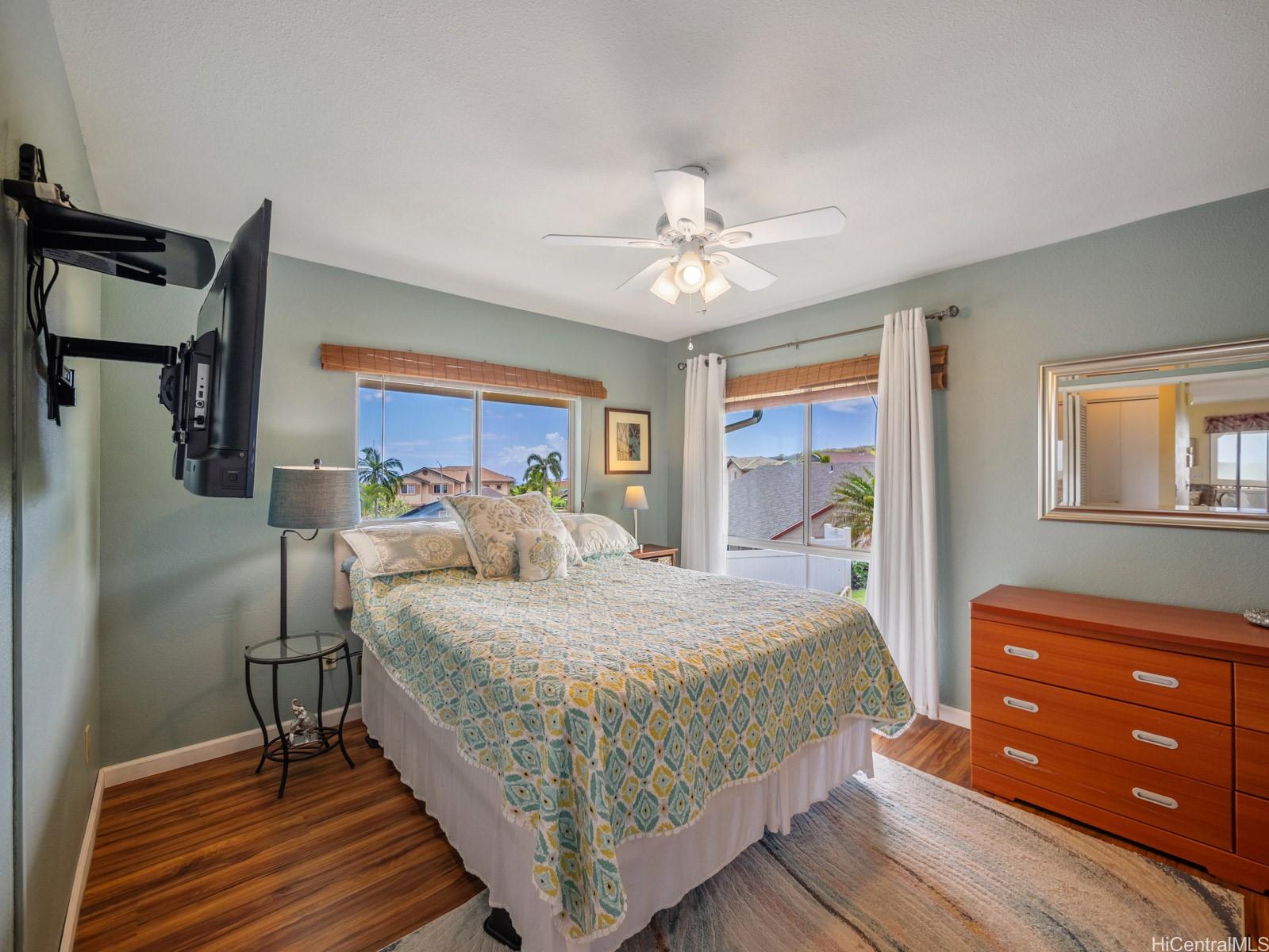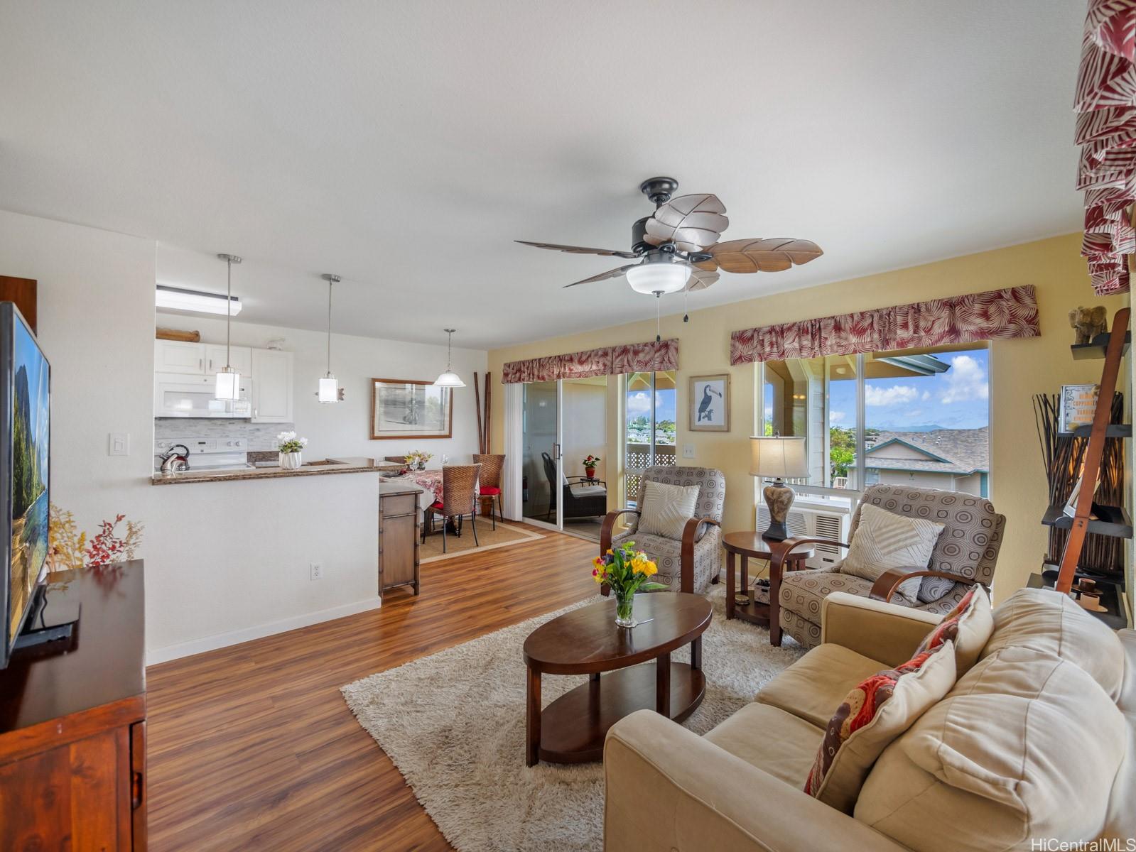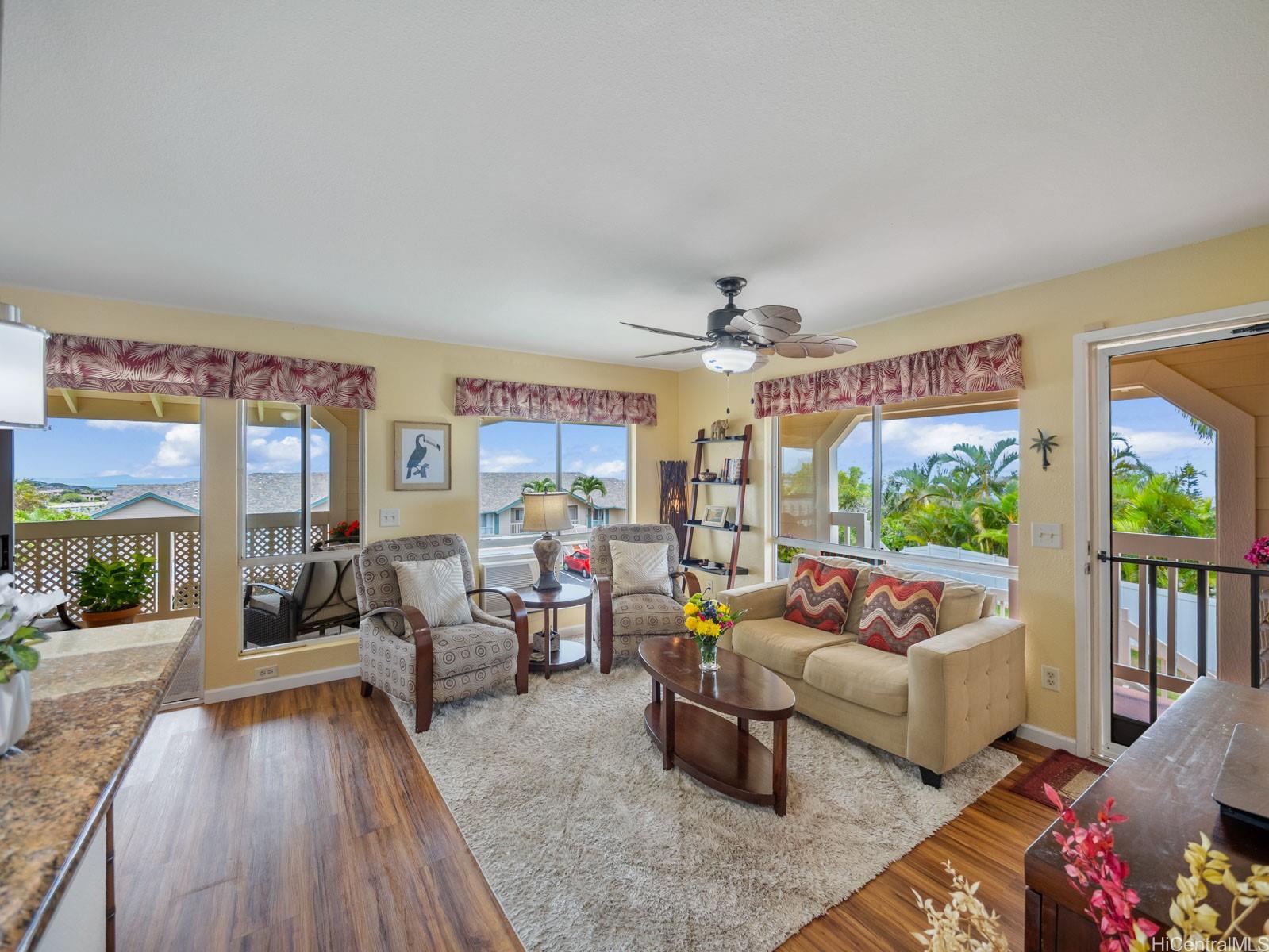 ***Fully-Furnished and Move-In Ready*** Wake up to sunrise over Diamond Head and wind down with sunset over the ocean—all from your own private island retreat. Escape to this stunning 2-bedroom, 2-bath corner-end unit in Westview at Makakilo offering rare 270° panoramic views of the mountains, city, Diamond Head, ocean, and both sunrise and sunset skies. Designed for peaceful island living, this home features two separate balconies—perfect for soaking in the breathtaking views and enjoying excellent cross-breezes year-round. This residence feels like a true island retreat above it all. Offered fully furnished, this turn-key, move-in ready home makes island living effortless—ideal as a primary residence, second home, or investment. Don’t miss this opportunity to own a slice of paradise with unmatched views and tranquility. Call your favorite local Realtor to schedule your private showing today!