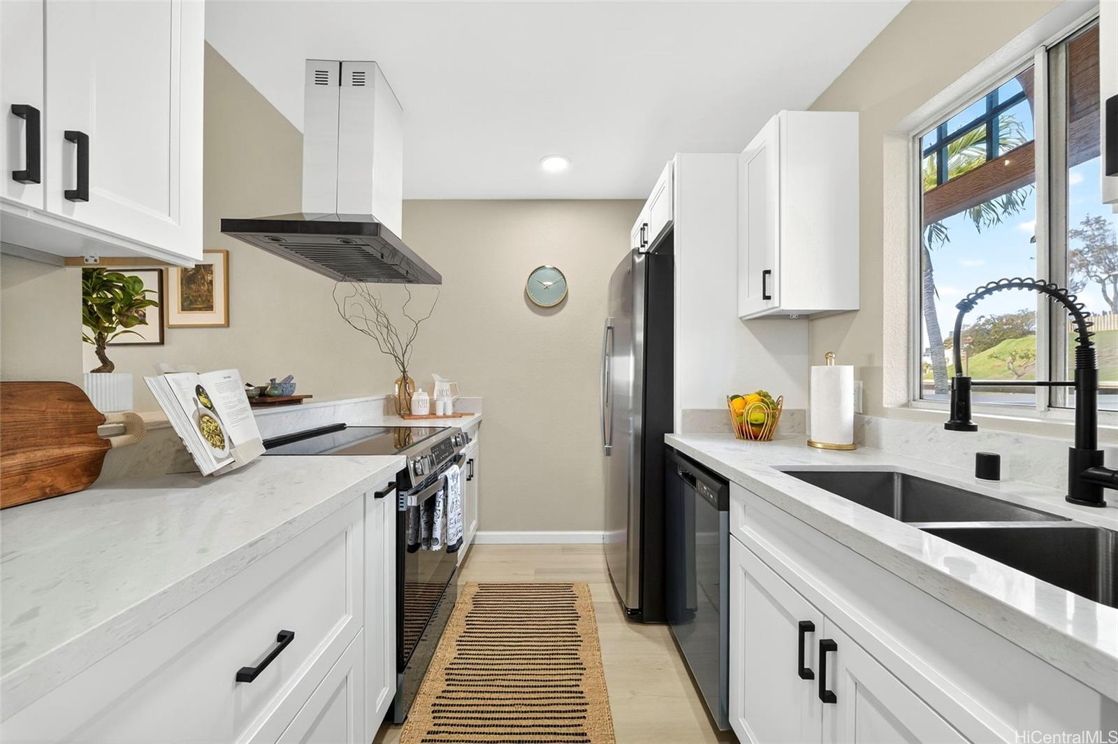 マカキロ第2期ウェストビューに位置する、海と山の景色を望む即入居可能な全面改装済み2ベッドルーム・2バスルーム住宅!美しくリニューアルされた本物件は、全室に高級ビニールフローリングを採用。新塗装と全照明器具の交換により、明るくモダンな空間を実現しています。 キッチンはソフトクローズ式のシェーカーキャビネット、クォーツカウンタートップ、そして食器洗い機を含む真新しい家電製品でアップグレードされました。 両方のバスルームはスタイリッシュな仕上げで全面改装され、タイル張りのウォークインシャワーが備わっています。 屋根付きのラナイでおくつろぎください。くつろいだり景色を楽しんだりするのに最適です。 ゲスト用駐車場と郵便受けのすぐ隣という便利な場所に位置し、専用駐車スペース2台分が含まれています。 公園や屋外スペースへの徒歩圏内 すぐに住める状態の完成済み住宅。次のオーナーが引っ越してすぐにお楽しみいただけます!