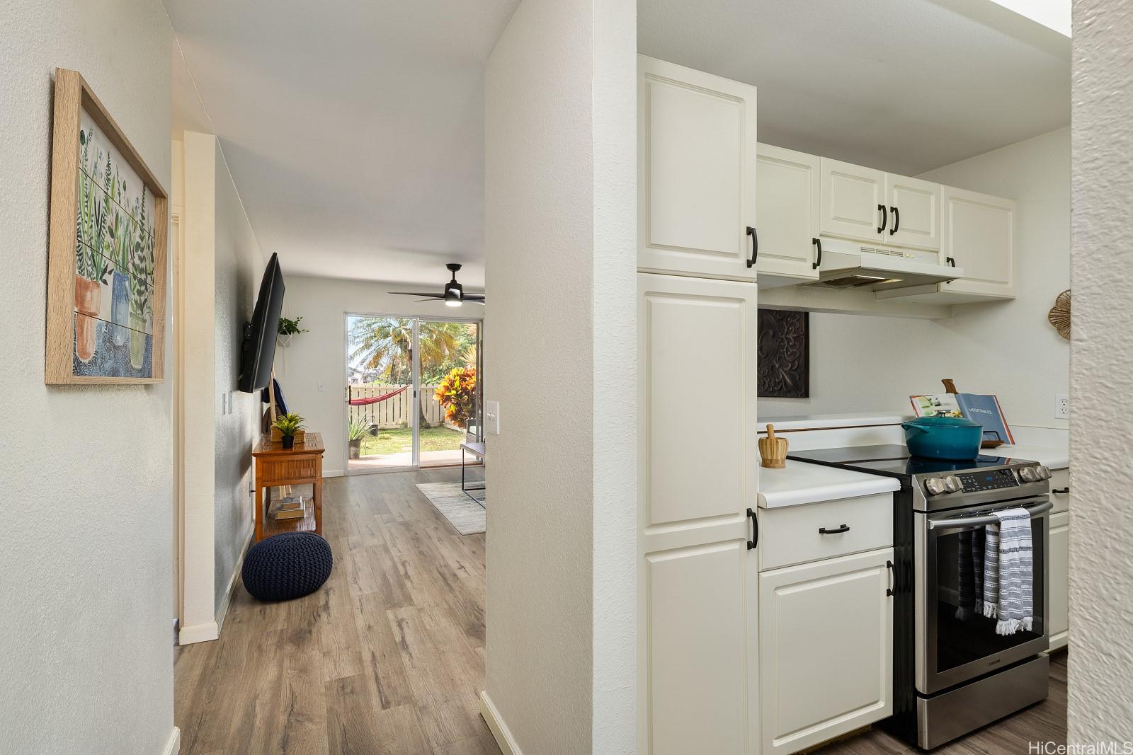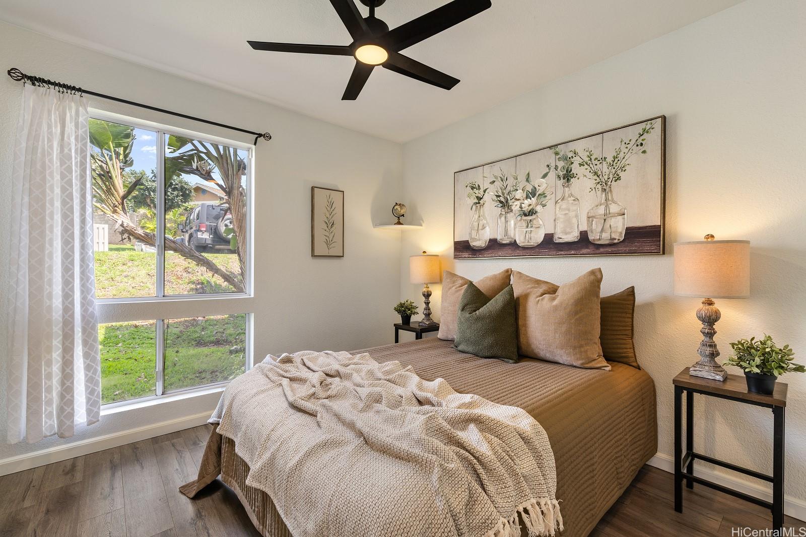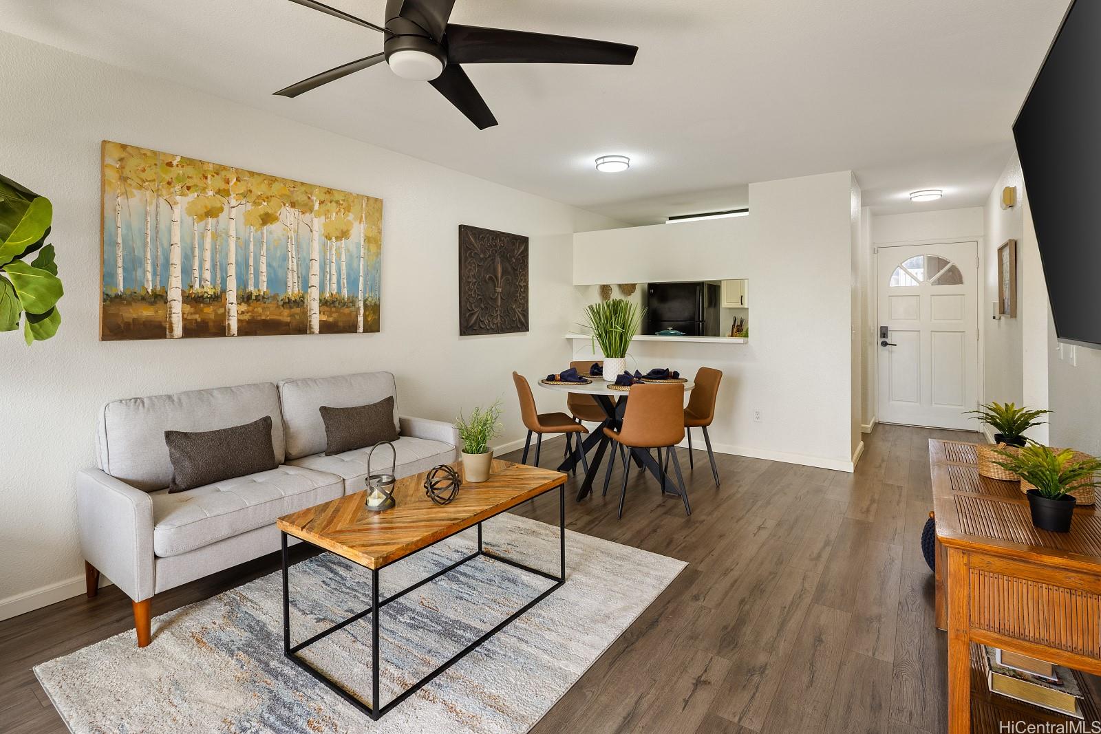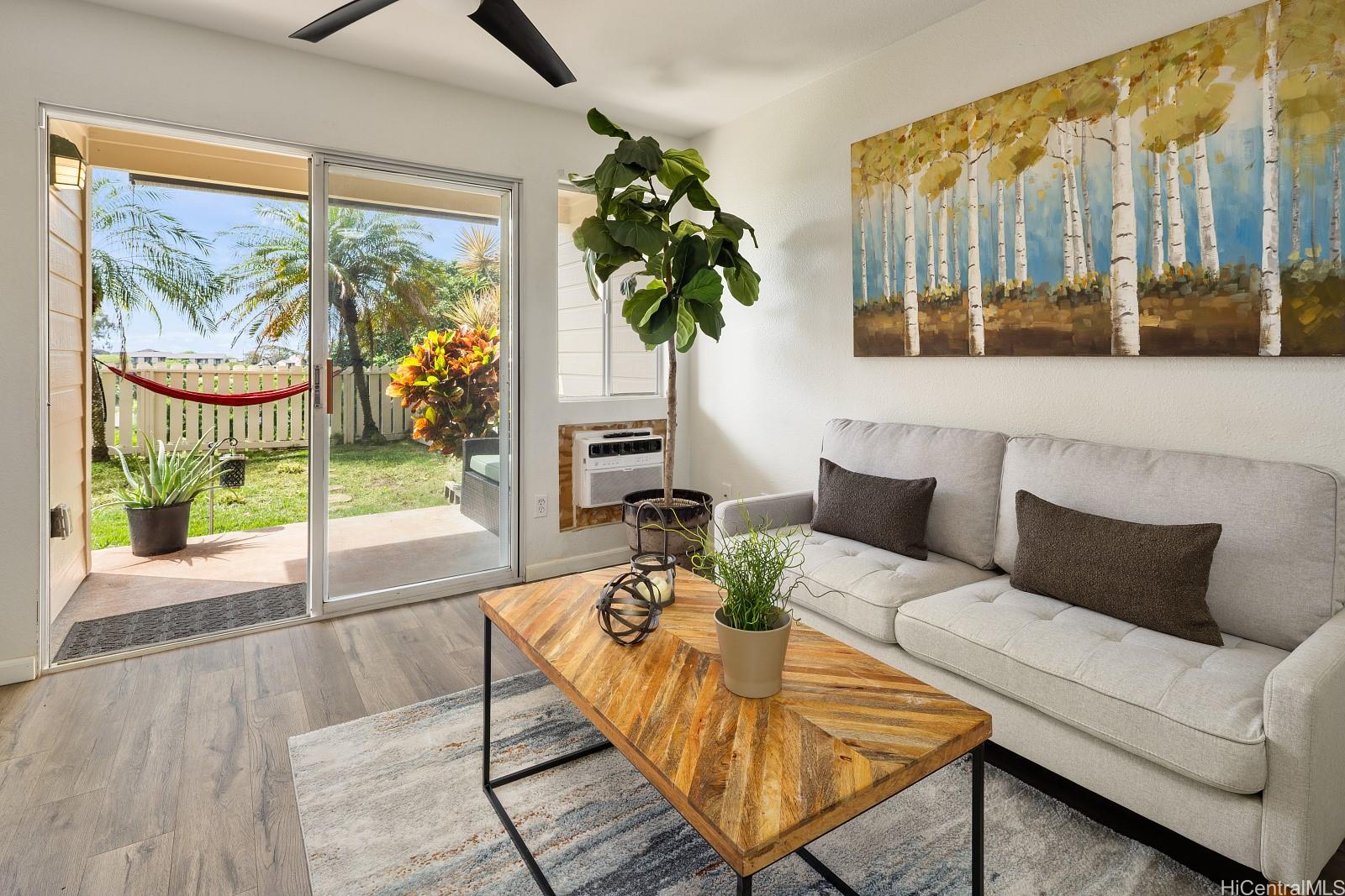 アッパー・マカキロにある高級タウンハウス・コミュニティ、「ウェストビュー・アット・マカキロ・ハイツ」へようこそ。 マカキロの主要道路であるマカキロ・ドライブから少し外れた、ほぼ最高地点に位置し、さらに最奥の建物にあるため、通り抜ける車がほとんどなく、静かで落ち着いた環境をお楽しみいただけます。 この2ベッドルーム・2バスルームの住戸は、742平方フィートという広さにしては広々とした印象を受けます。 1階の住戸ですので、屋根付きのパティオエリアを備えた広々とした芝生の裏庭をお楽しみいただけます。ゲストを招いてのおもてなしや、愛犬たちが思う存分駆け回るのにも最適です。 建物の周囲には、背後に広々とした芝生の広場が広がるだけで、開放感あふれる雰囲気をさらに際立たせています。 この間取りは、各寝室が住戸の両端に位置し、その間に2つのバスルームが挟まれているため、最大限のプライバシーが確保されています。 建物の真正面に1台分の駐車スペースがあり、もう1台分は道路を挟んだ向かい側にあるという便利な立地です。 共同の洗車場とゴミ捨て場も、駐車場の近くにあります。 素晴らしい立地にある、初めてのマイホームに最適な物件です。 ぜひお越しください。 .