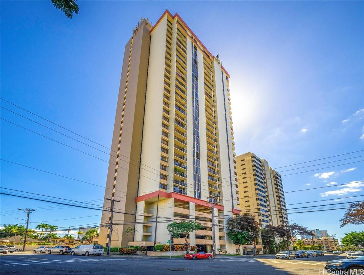 Welcome home to an urban high-rise oasis featuring sweeping city, mountain, and sunset views. This desirable 2-bedroom, 1-bath corner unit offers flexible living with a versatile bonus space – ideal for a home office or potential third sleeping area. Recently remodeled, the unit showcases brand-new kitchen appliances and a new electrical panel installed in July 2024, providing peace of mind and modern reliability. Unique to the ’06 stack, the home features an expanded entryway with additional storage, enhancing functionality. The original large lanai has been thoughtfully enclosed to create expanded interior living space. Enjoy refreshing cross-breezes and stunning vistas from this well-situated unit, conveniently located near freeway access, shopping, and dining – just minutes from Ala Moana Shopping Center. A rare opportunity to own a corner unit with low maintenance fees in a prime location. Schedule your private showing today!