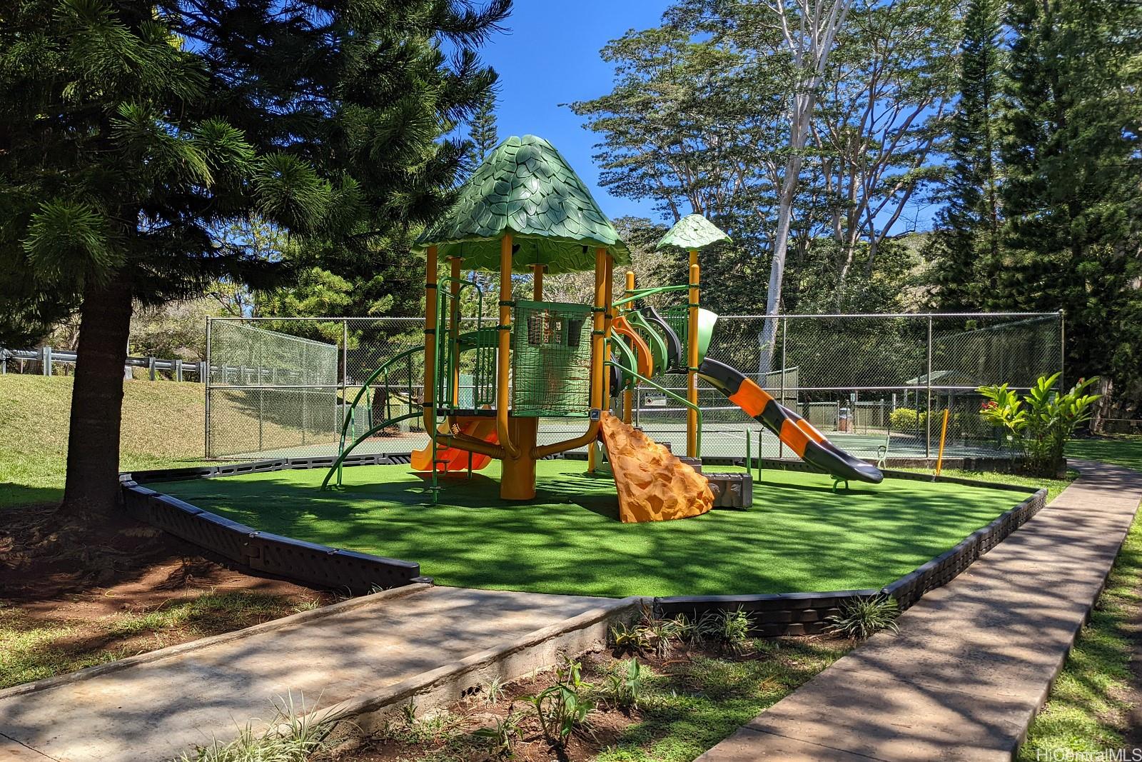 Pet Friendly 3-bedroom, 2.5-bath, 2-story Home, hidden in Lush Launani Valley. Welcome to Woodcreek Crossing, a quiet Planned Urban Development with a playground, private road, guest parking, and a mixture of Single Family / Duplex homes tucked alongside Waikakalaua Stream. This thoughtfully layed out space on a perimeter lot has a livingroom and kitchen that opens up to rich rainforest views. Convenient half bath off the garage entry. Fenced yard is perfect for added privacy. Guest Parking located nearby if the 2-car garage and 2-driveway stalls aren’t enough when entertaining. Minutes to Schofield Barracks, Wheeler AFB, Freeway Access, Shopping, Restaurants, Gym, Golf, and Markets. Centrally located for commutes town-bound, and quick drive to iconic Dole Plantation, Historic Haleiwa Town, and famous North Shore Beaches. Valley AOAO has additional recreational areas for use including parks, jogging paths and tennis/basketball courts. First time on the resale market. Freshly Painted Interior. More pictures to come. 12/14 Open House is Cancelled due to weather. Thank you.