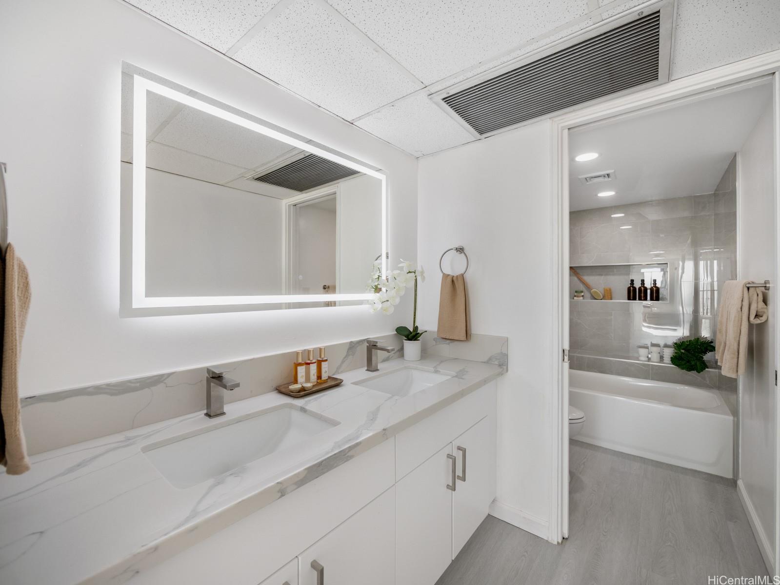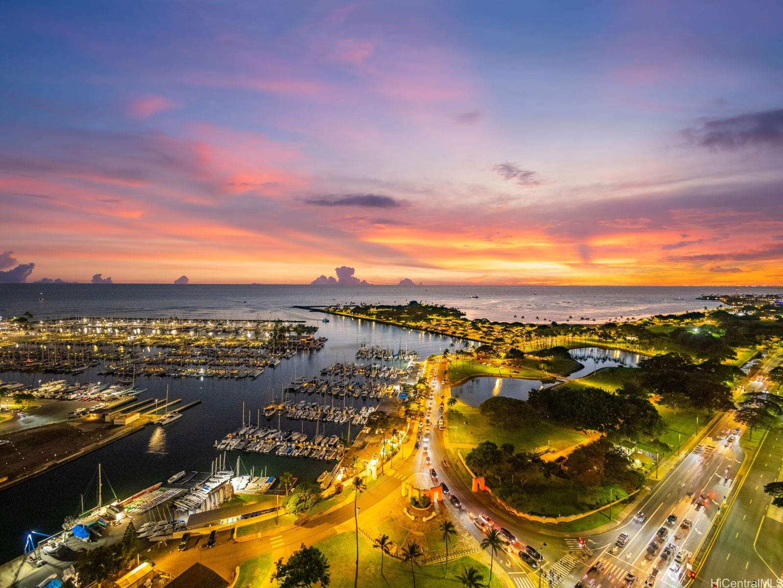 Welcome to this fully remodeled Yacht Harbor Towers unit, where luxury meets breathtaking beauty. This modern 2-bedroom, 2-bathroom unit offers sweeping, panoramic views of the ocean, colorful sunsets, and the yacht harbor. Situated just steps away from the Ala Moana Shopping Center, beach parks, and an array of dining options, this residence captures the essence of convenience and style.Emjoy an array of top-tier amenities, including a heated pool, tennis court, barbecue area, and much more, all designed to elevate your living experience. The unit also features central AC + an enclosed lanai with floor to ceiling windows where you can unwind with the stunning sunset views.Additional conveniences includes 24hr security, covered parking, and in an unit washer/dryer. Experience the perfect blend of luxury, comfort, and prime location.
